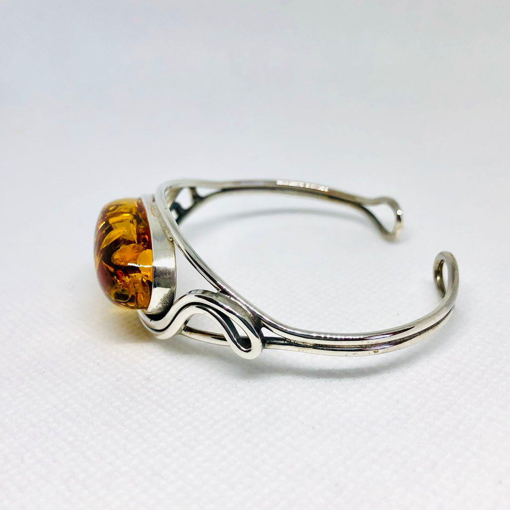 This is a one-of-a-kind cuff bracelet, hand crafted in sterling silver with an amazing Baltic amber stone. This bracelet's size is adjustable.