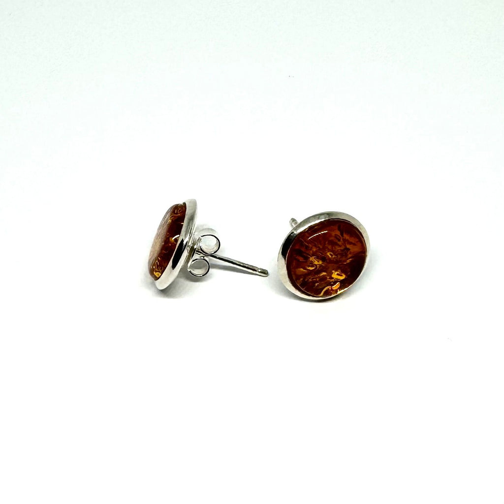 This is one of our classic pairs of amber studs, where stones are flat and look more like buttons on the ears. They are unisex!