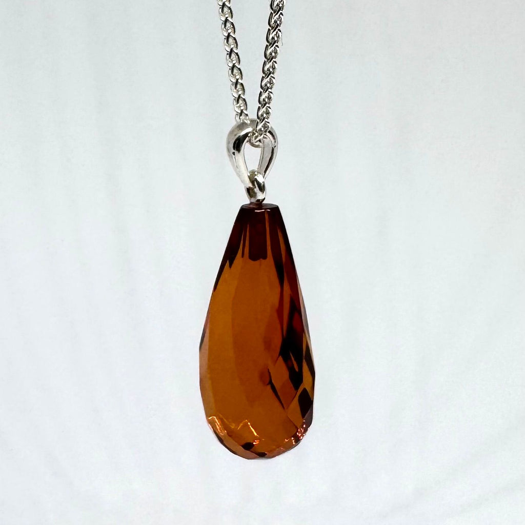 This teardrop pendant is featuring a beautifully faceted amber stone, specially selected for its purity from any inclusions - organic or bubbles, in order to show the design well.