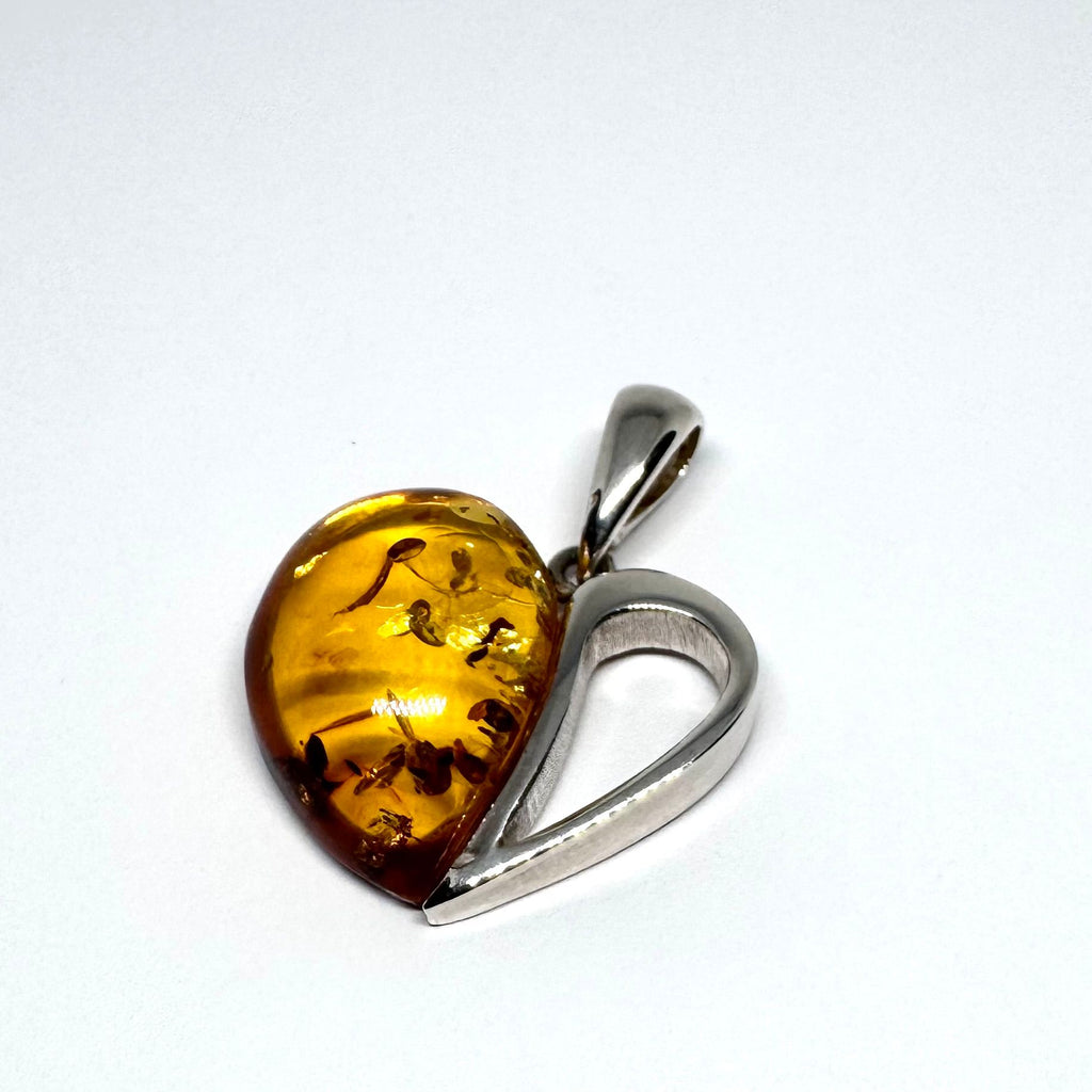 Perfect for Valentine's or other "With Love" occasion, this set shows silver artistry as well as the beauty of amber in these bold pieces (chain is included).