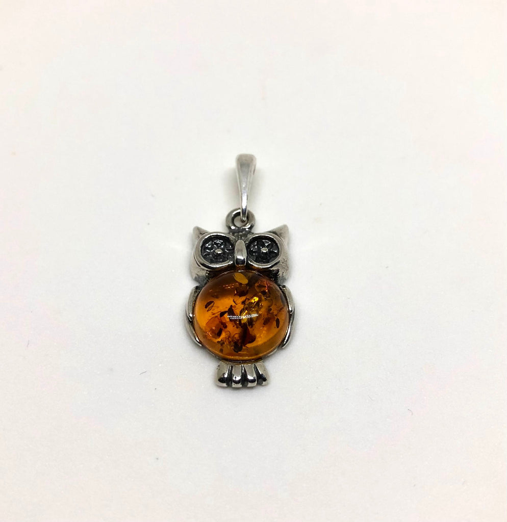 This pendant is a good depiction of a wild owl with its mesmerizing eyes. It is made in sterling silver (nickel free) and a nice stone of Baltic amber.