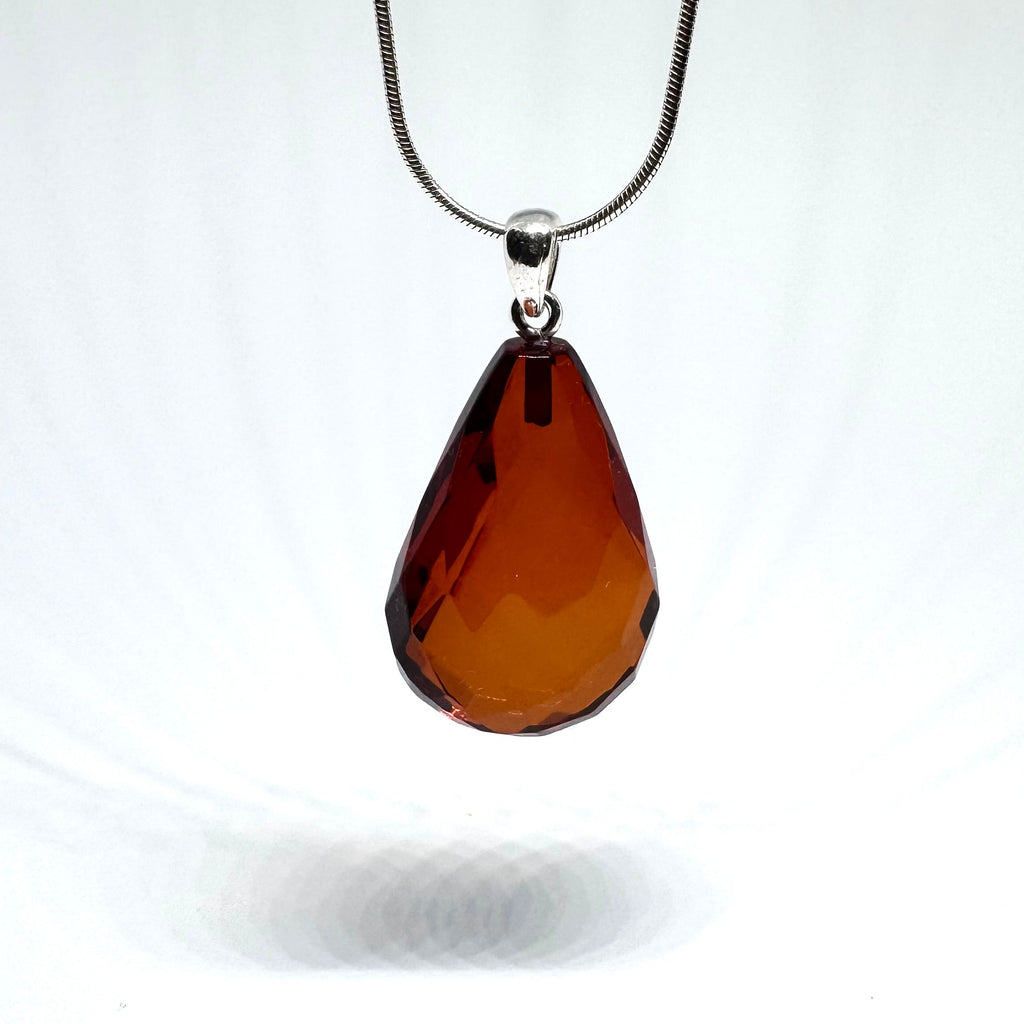 This faceted amber pendant will satisfy ladies with more sophisticated taste. Traditionally, amber pieces chosen for faceting have to be very clean and transparent, often in cherry colour, but also in cognac. This pendant glitters with in any movement!