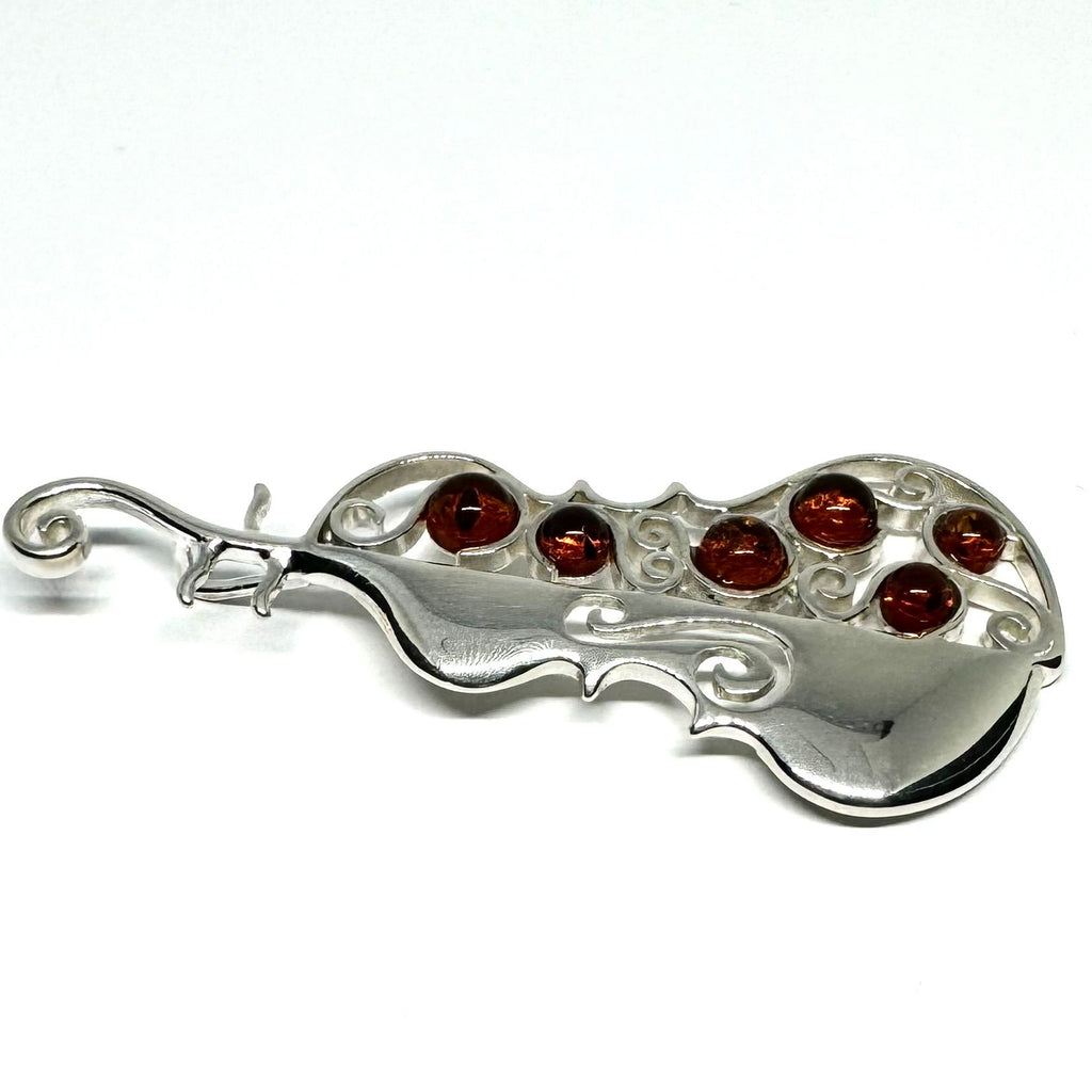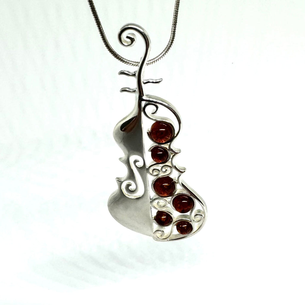This is a very attractive pendant featuring Baltic amber stones in an interesting, silver design of an imaginary viola.