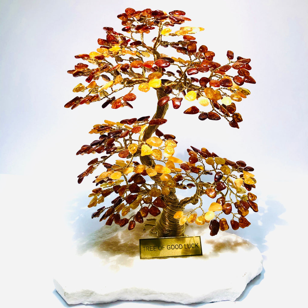 Our beautiful GEM TREES are handmade in Poland from genuine semi-precious stones attached to brass wire on a marble base. Trees symbolize good fortune and prosperity.