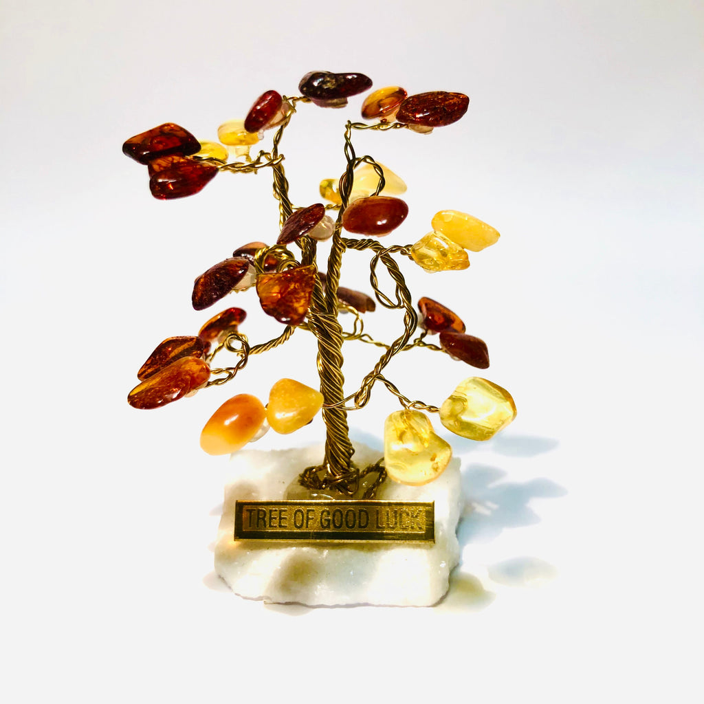 Our beautiful GEM TREES are handmade in Poland of genuine Baltic amber or other semi-precious stones attached to brass wire on a marble base. Trees symbolize good fortune and prosperity.