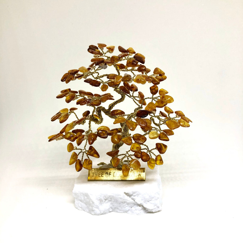Our beautiful GEM TREES are handmade in Poland of genuine Baltic amber or other semi-precious stones, attached to brass wire on a marble base, Trees symbolize good fortune and prosperity.
