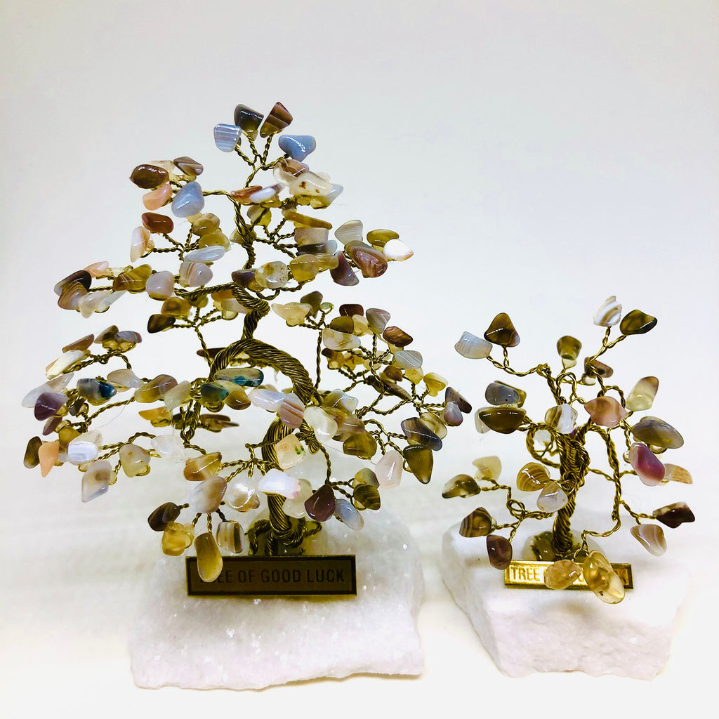 Our beautiful GEM TREES are made of genuine semi-precious gemstones, attached to brass wire on a marble base.