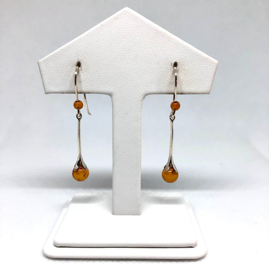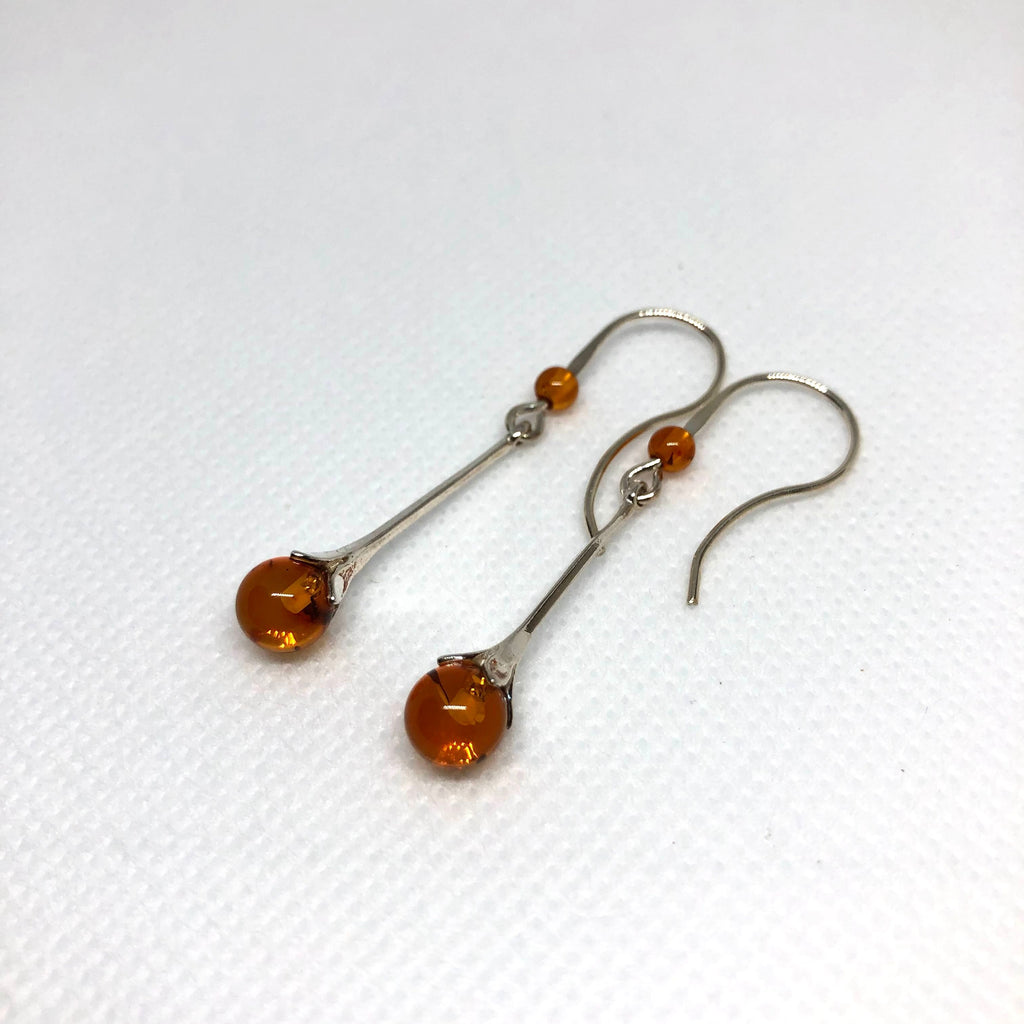 This pair of simple amber hanging earrings is one of our absolute classics, we have been selling them for over 25 years and they are still going strong!