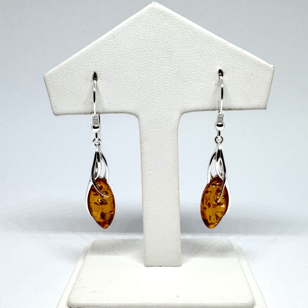 Exquisite Amber and Silver Hanging Earrings